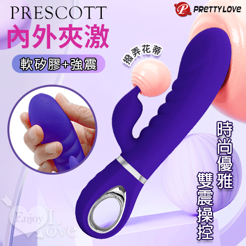 派蒂菈 ‧ Prescott 內外夾激 優雅時尚雙獨操控按摩棒﹝親膚軟矽膠+7頻強震+靜音+防水+快捷充電﹞青春藍