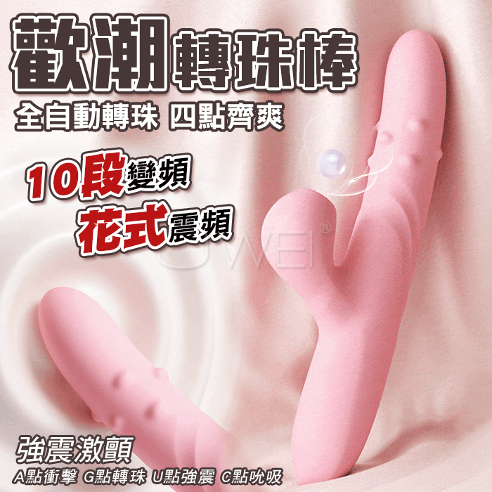 謎姬 MizzZee.歡潮.10段變頻四點齊爽伸縮轉珠按摩棒-粉(USB充電)