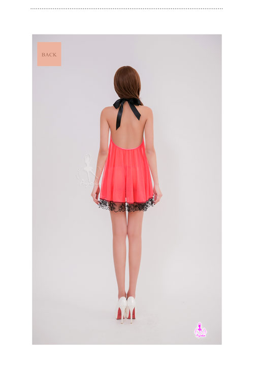 甜蜜桃紅綁脖美背二件式柔紗睡衣