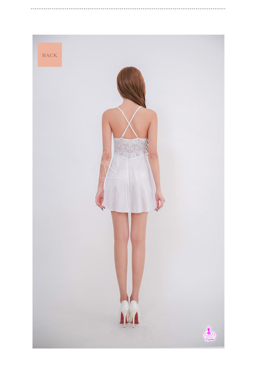 ►您現在的位置:首頁>純白美學蕾絲柔緞交叉美背睡衣