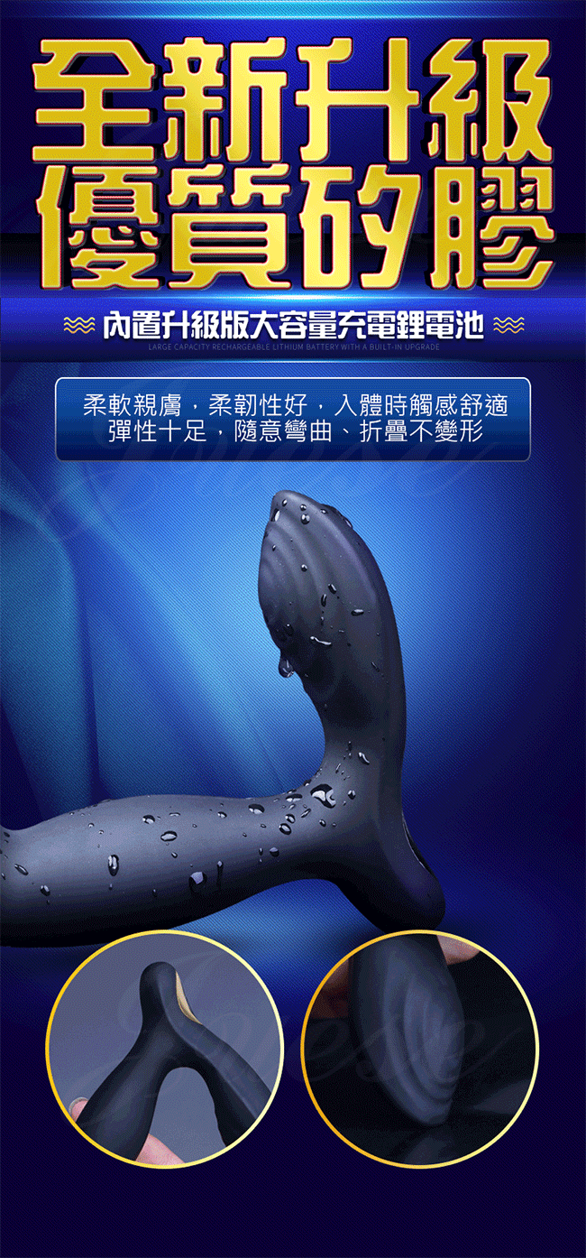 抽象流體美學設計,吻合人體工程學,有易進入防滑出的優點。主體角度和外形能順利找到前列腺進行按摩,可調節角度的輔助震動器在外部按摩,雙震齊下,快感加倍。