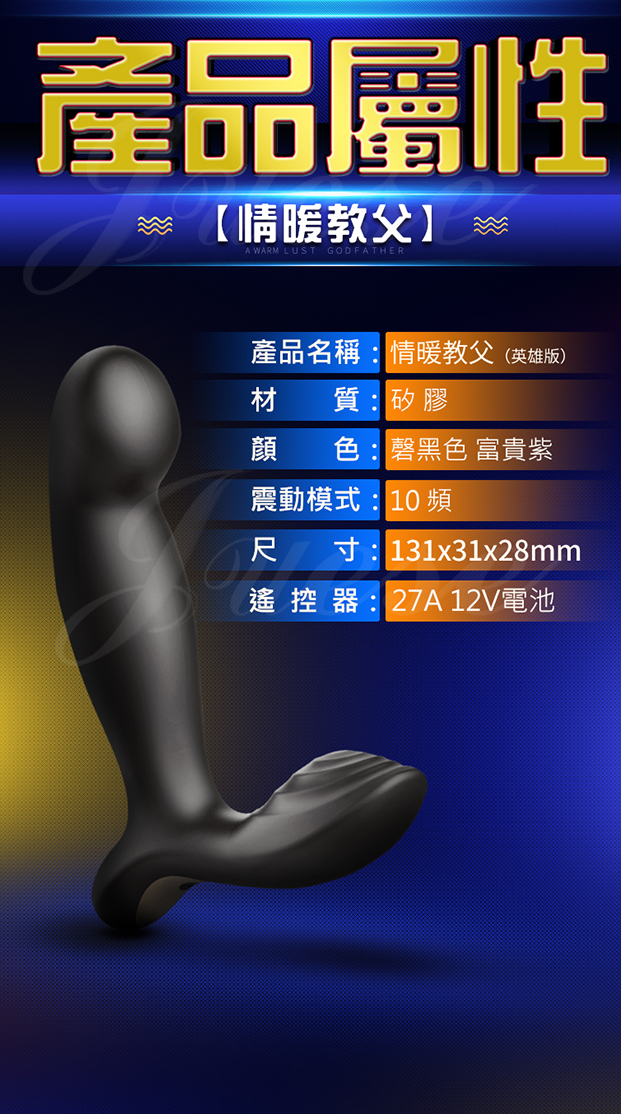 | 情暖教父 智能恆溫 10段變頻雙震前列腺按摩棒-英雄版搖控款(黑/紫)