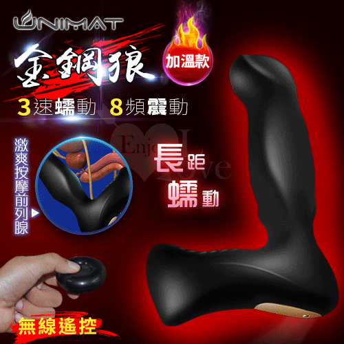 ►您現在的位置:首頁>UNIMAT 金鋼狼加溫型 ‧ 3速長距蠕動/8頻震動/無線遙控/磁吸充電/多功能前列腺按摩棒