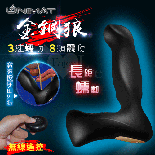 ►您現在的位置:首頁>UNIMAT 金鋼狼 ‧ 3速長距蠕動/8頻震動/無線遙控/磁吸充電/多功能前列腺按摩棒