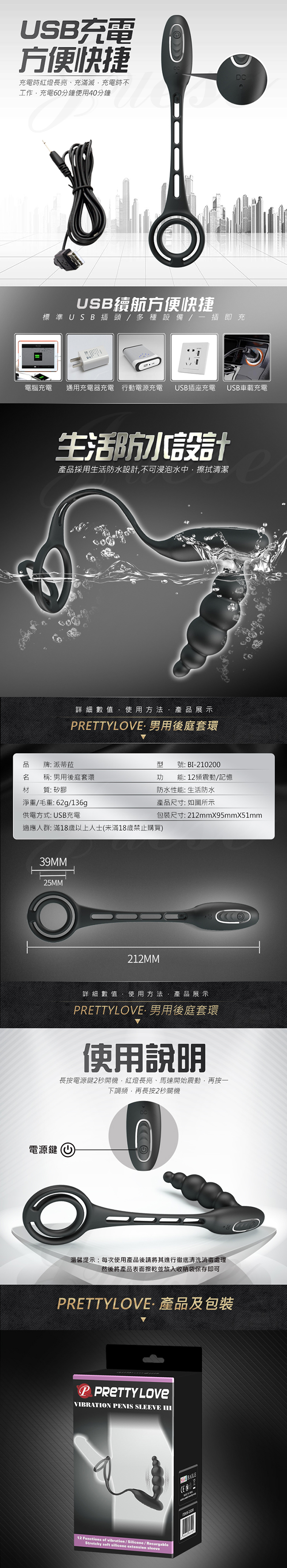 | 派蒂菈 ‧里悅勒 12段變頻 後庭拉珠激情矽膠鎖精套
