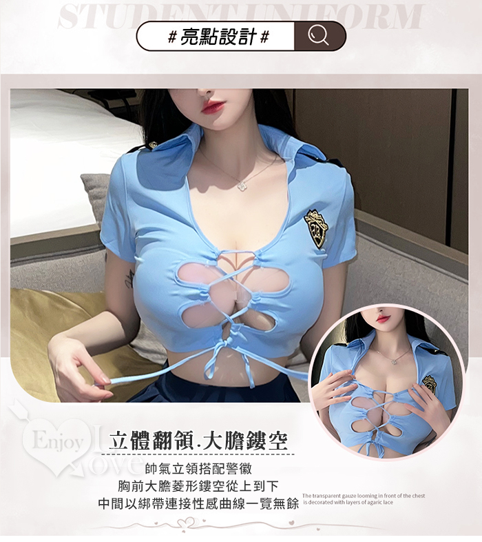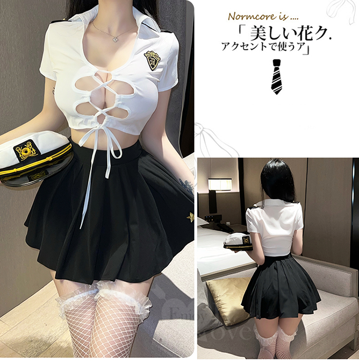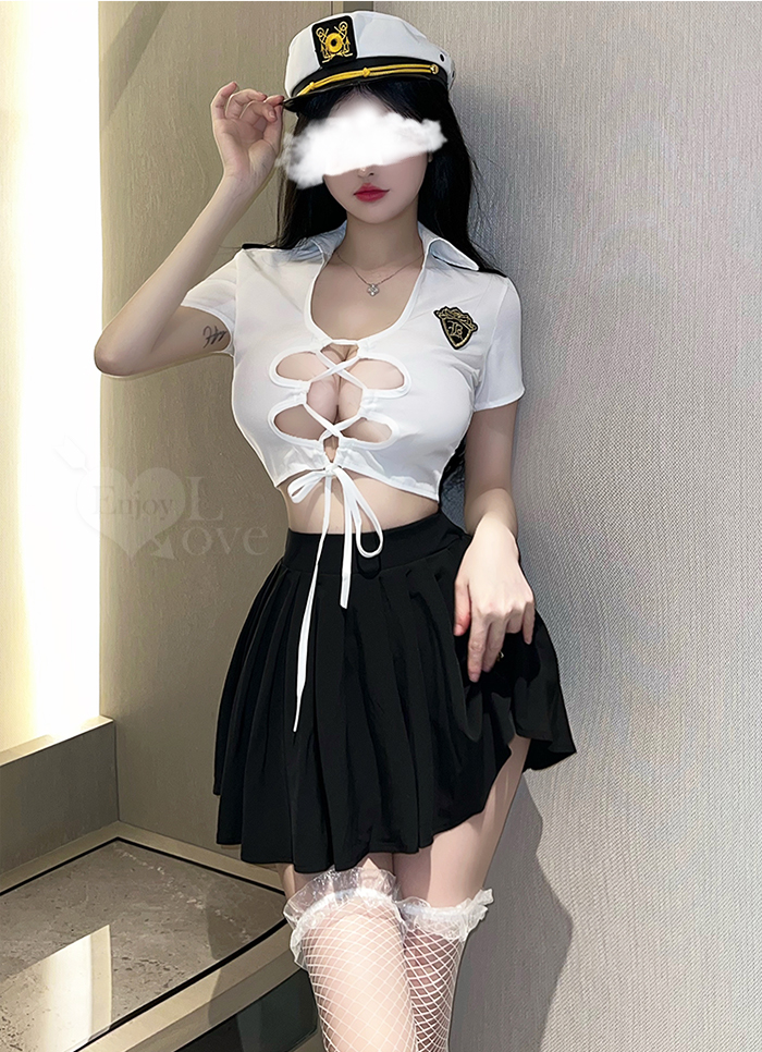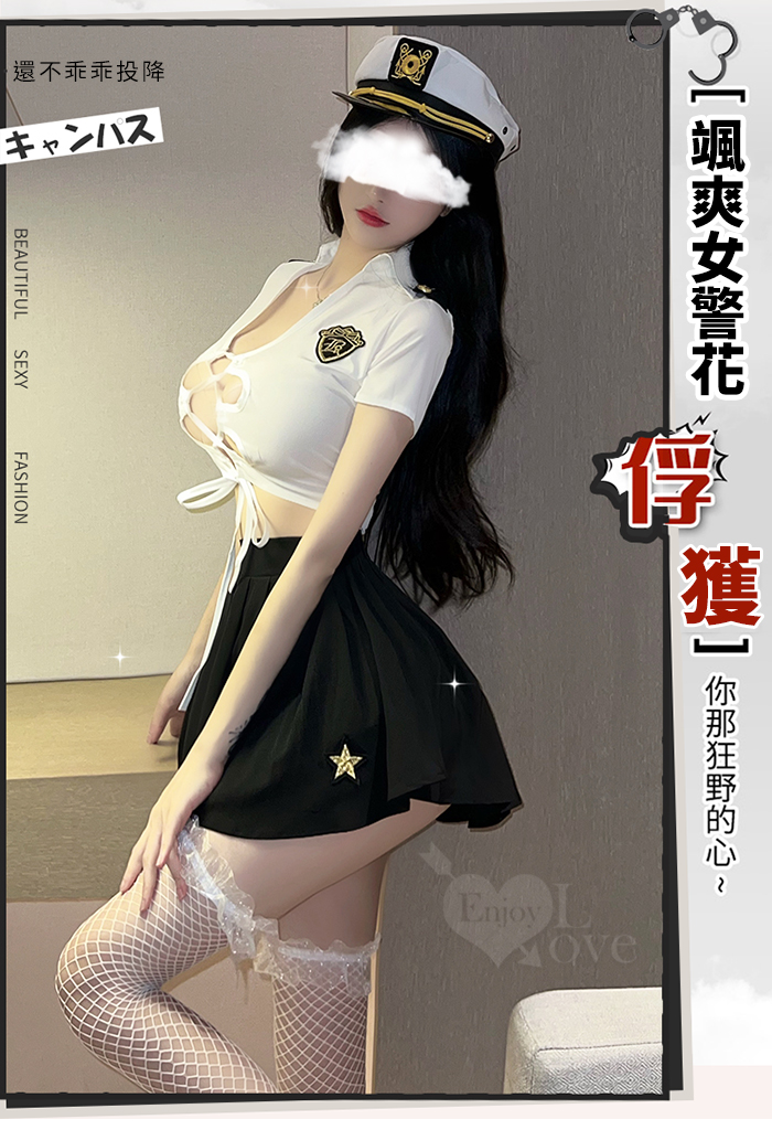 ►您現在的位置:首頁>女警角色扮演服!立體翻領性感交叉露乳百褶裙三件組﹝白﹞