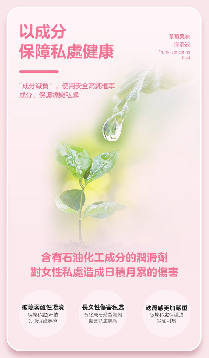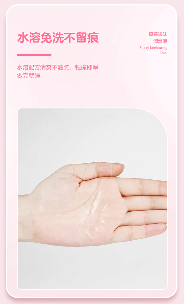 可以舔的果味潤滑液,鮮甜多汁草莓,馥鬱鮮美味蕾暴擊,添加草莓提 取物,,鮮嫩草莓果香,喚醒味蕾,一口一口挑逗情慾,舌尖和肉體的激 情碰撞,快感來得更猛烈;仿愛液的溫和莓莓,貼近自然愛液酸鹼值, 溫和不刺激,不破壞私處環境酸鹼平衡;激情玩法,解鎖更多歡愉,水 溶配方清爽不油膩,輕擦即凈,做完就睡!