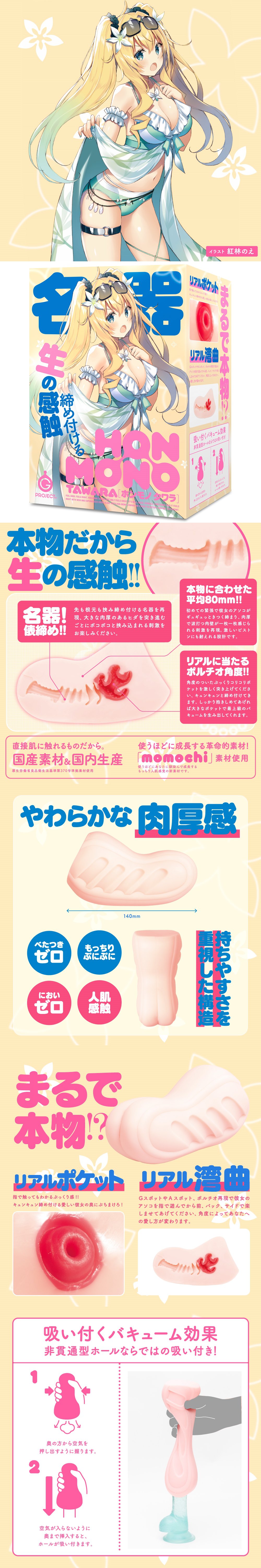 HON-MONO重現了無論是前端還是根部能緊握住的名器的觸感!接近實物的平均尺寸,G點和A點,逼真的子宮頸角度,波浪形肉壁,講究的素材「柔軟讓人融化,逼真的肌膚觸感」, 非貫穿型自慰套獨有的真空吸吮性能,重現一邊緊握住您的前端及根部,一邊向深處衝刺的名器!!每次經過又大又厚的褶皺時,會感受到被擠壓的刺激,請讓緊緊包裹住您的她多多疼愛您。使用可安心直接接觸皮膚的日本國產素材以及在日本國內生產。審查編號:2304708。
