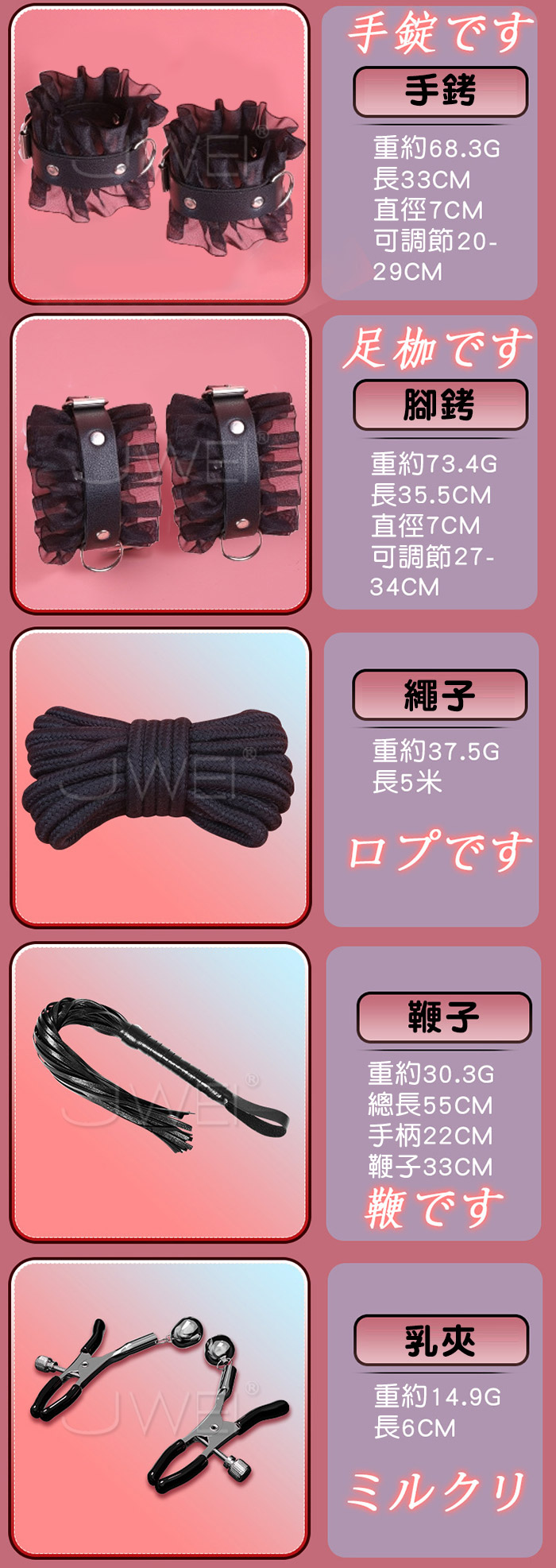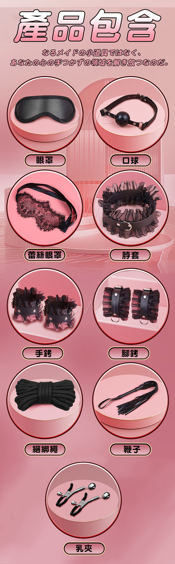 產品規格 ■尺寸:大小詳如圖片標示 ■材質:蕾絲、金屬、皮革 ■特色:增進情趣 ■SM用品屬於特殊情趣用品,需在雙方清醒自願的情況下使用, 該物品僅作為情趣用品使用,使用時應注意安全!!