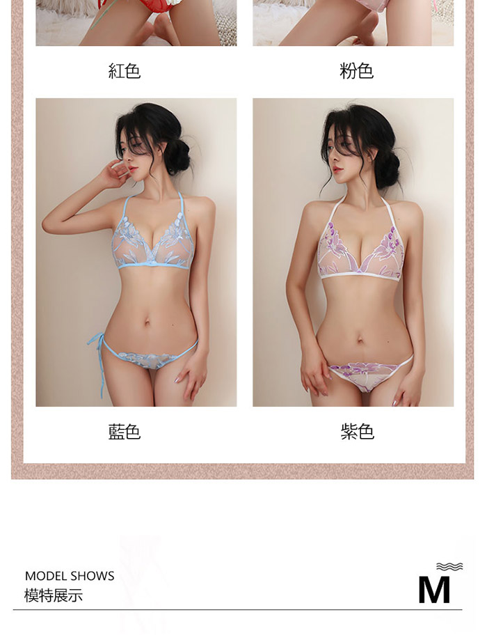 ►您現在的位置:首頁>柔情佳人.火辣繫帶三點式蕾絲透視套裝-藍色