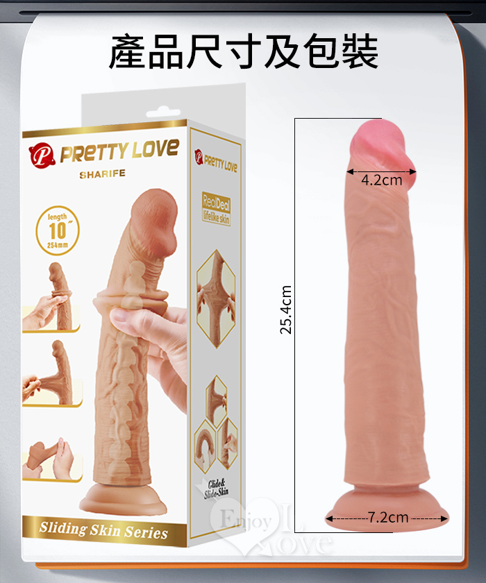 | 派蒂菈 ‧ Sharife 沙里夫 內挺外柔 10吋雙層滑皮工藝 仿真膚質吸盤老二按摩棒﹝內彎曲龍骨﹞
