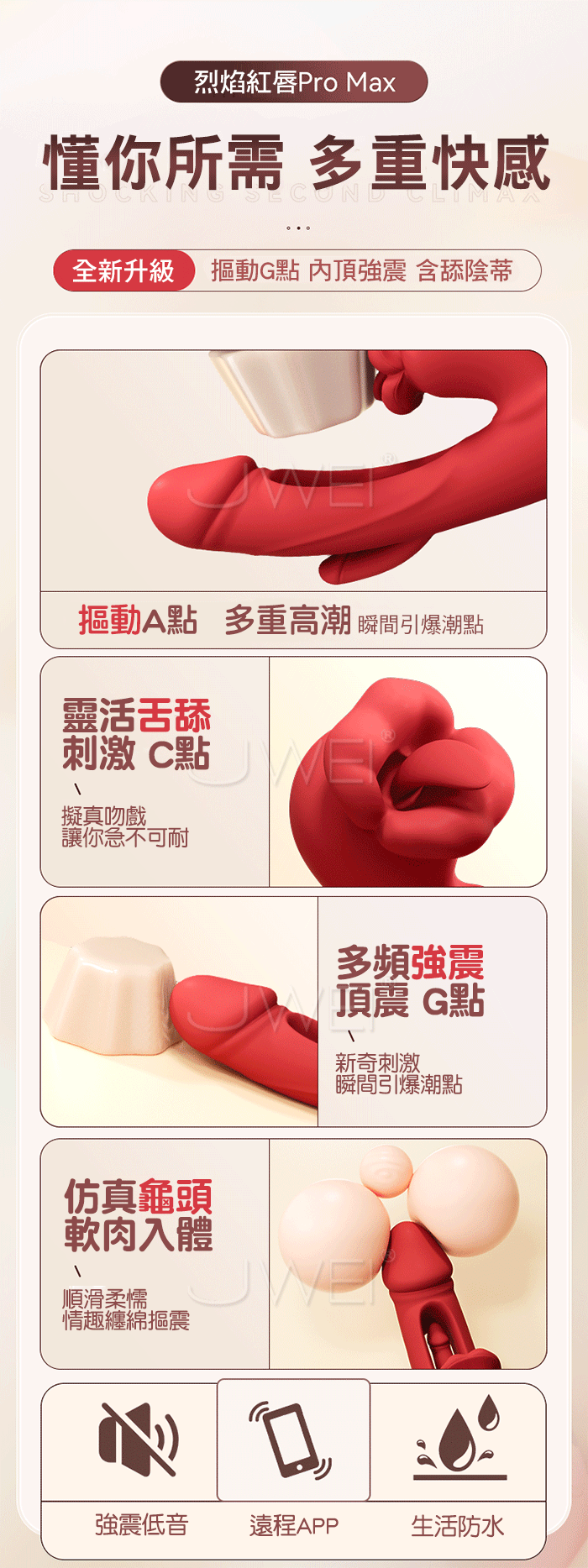 9頻衝撞模式:提供9種不同的衝撞模式,帶來強烈的震動刺激,滿足不同需求。