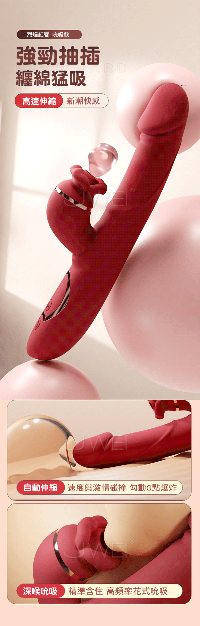 吸吮伸縮震動款:吸吮和伸縮設計相結合,帶來更加多變和刺激的體驗。