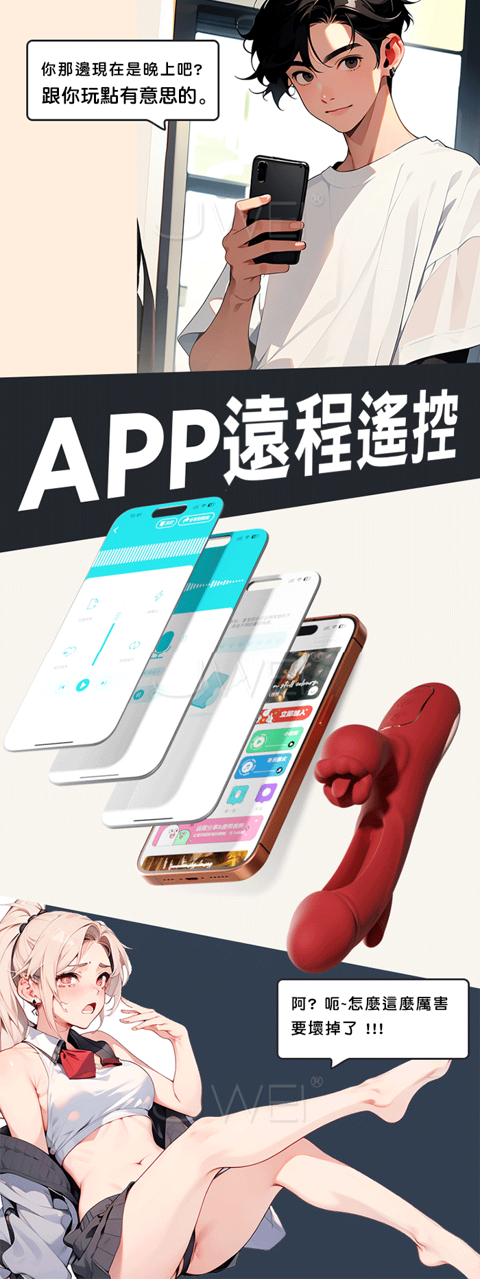 APP遠端遙控:透過APP進行遠端控制,輕鬆調整震動模式和強度,提升互動體驗。