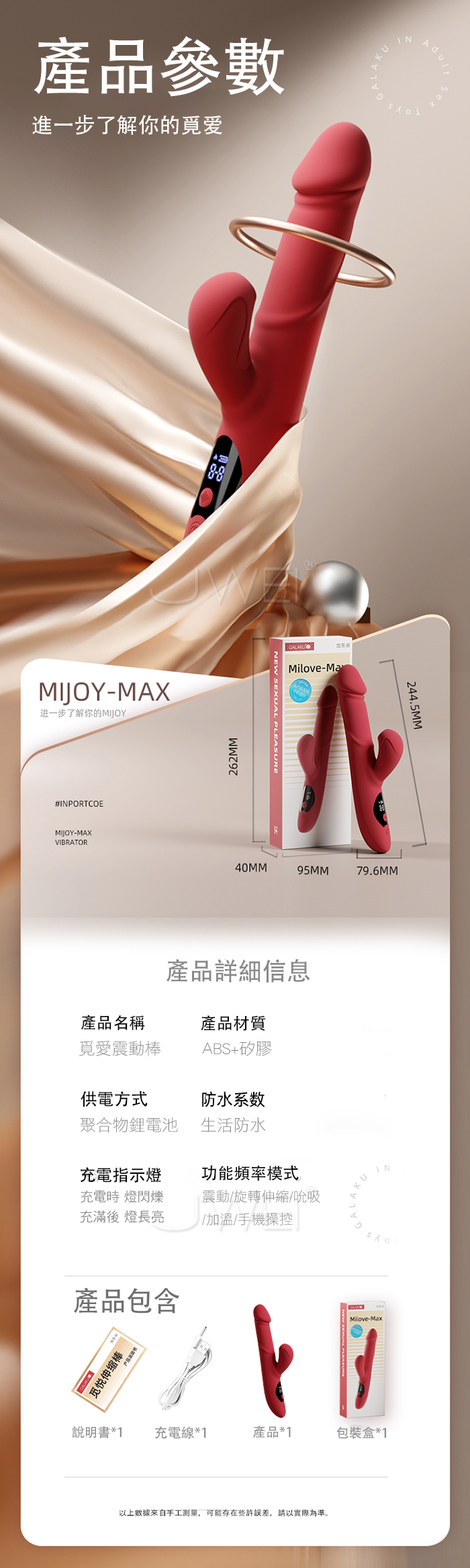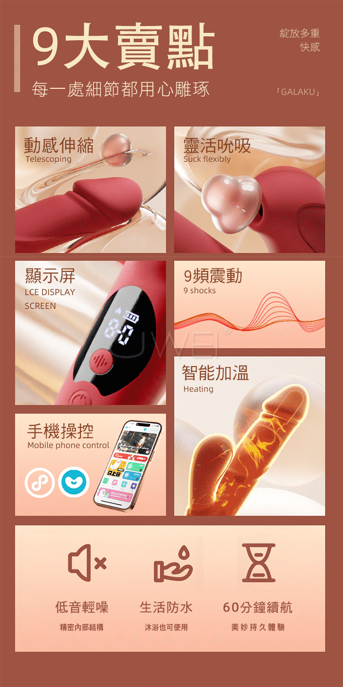 ■功能:9頻旋轉伸縮+震動+吮吸、加溫、APP操控