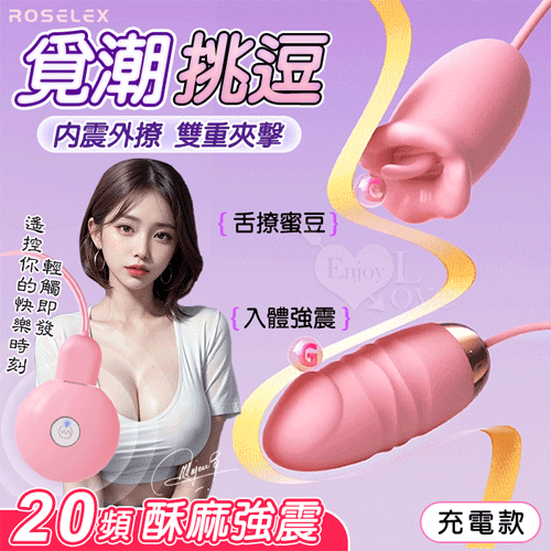 | ROSELEX 勞樂斯 ‧ 覓潮 20段變頻舌撩+震動組合雙跳蛋﹝USB充電控制器款﹞粉