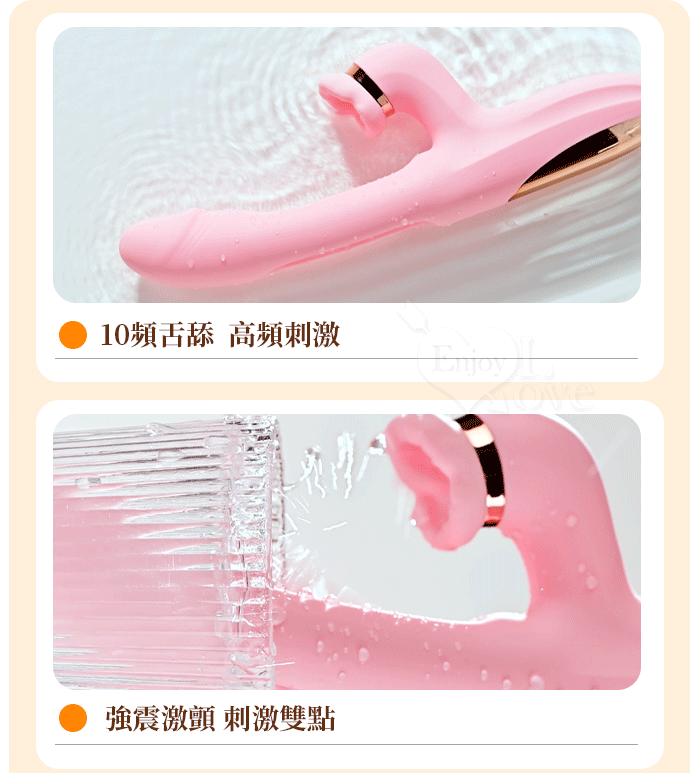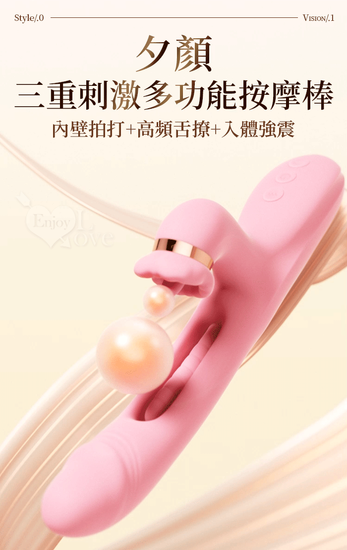 | ROSELEX 勞樂斯 ‧ 夕顏 三重大刺激多功能按摩棒﹝10頻調控+內壁拍打+高頻舌撩+入體強震﹞蜜粉