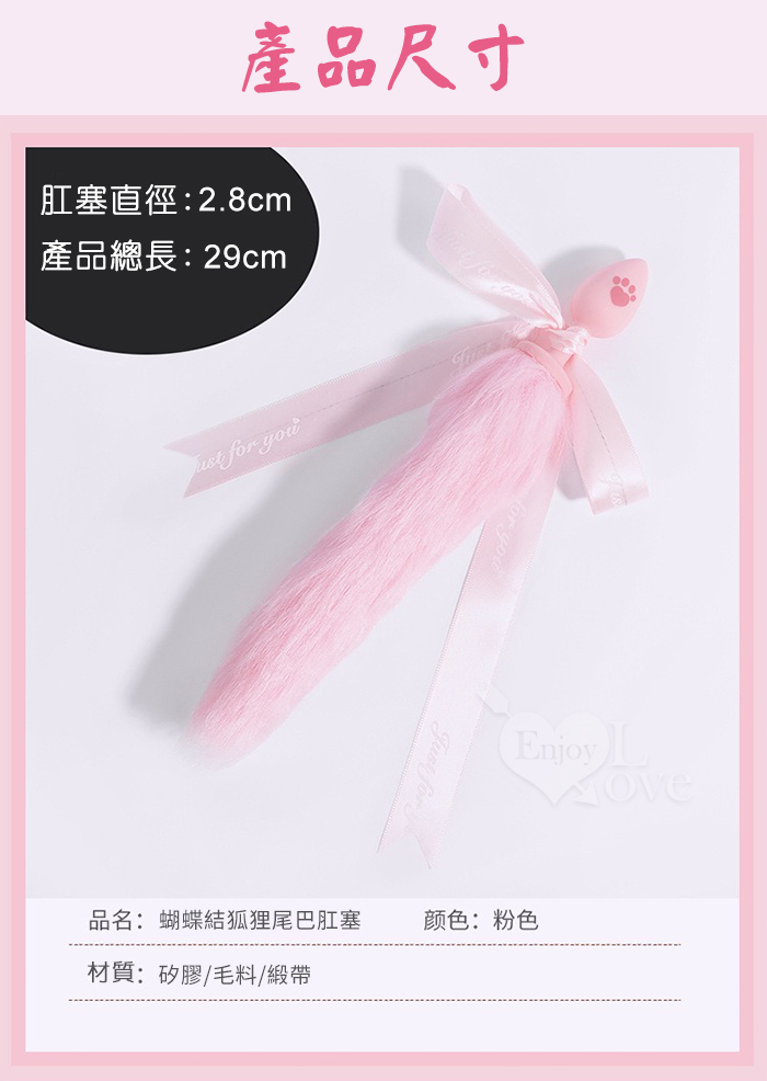 | 激性扮演 ‧ 蝴蝶結狐狸尾巴 可愛猫爪印親膚矽膠肛塞﹝粉紅﹞