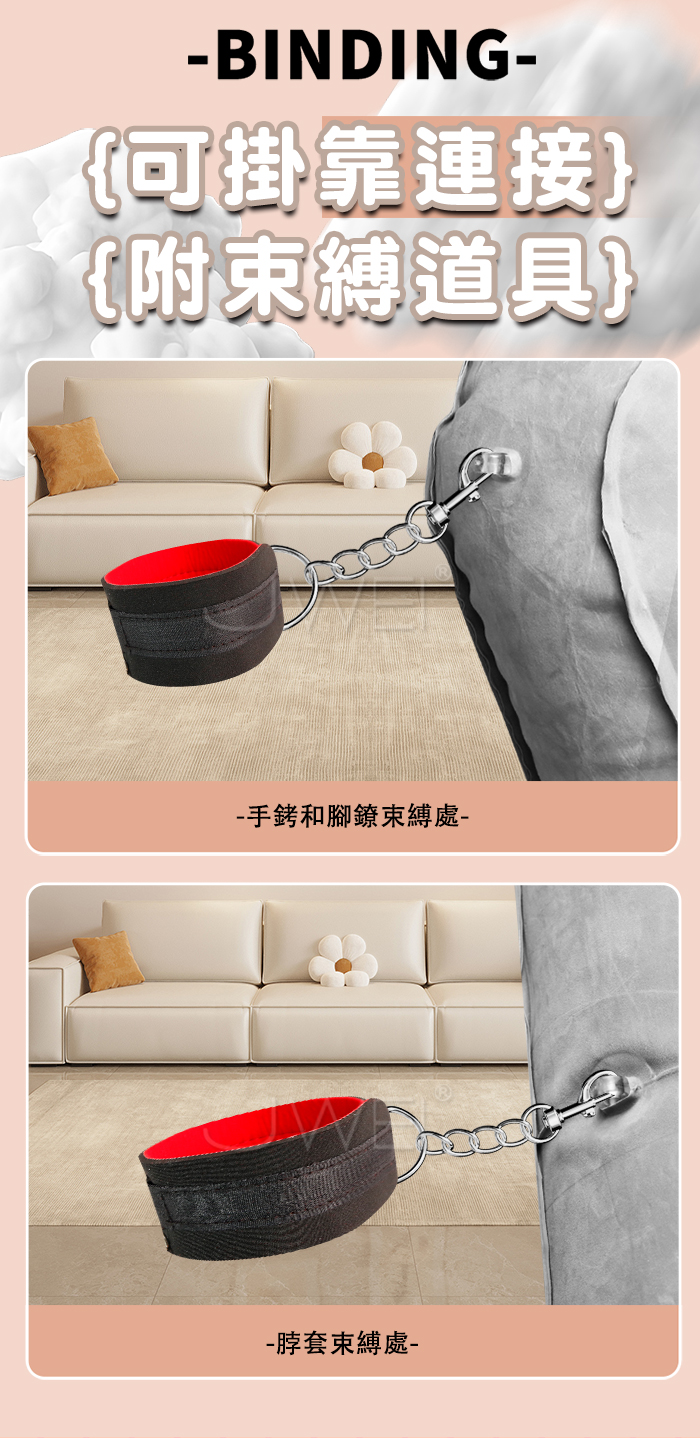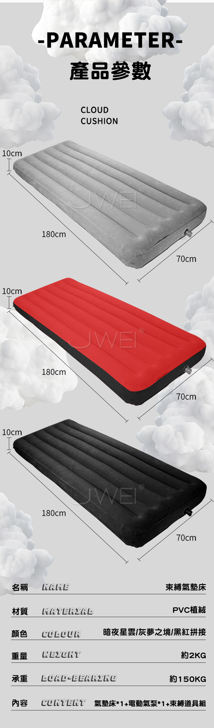 | 束縛氣墊床.束縛手/腳/脖銬+灰色輕柔植絨彈力性愛床墊【附贈電動打氣泵】