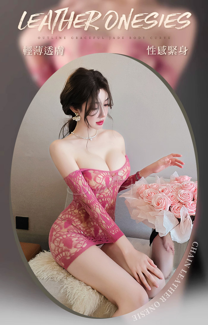 | 純愛陷阱.純欲鏤空大網眼酥胸外露吊襪連體性感貓裝