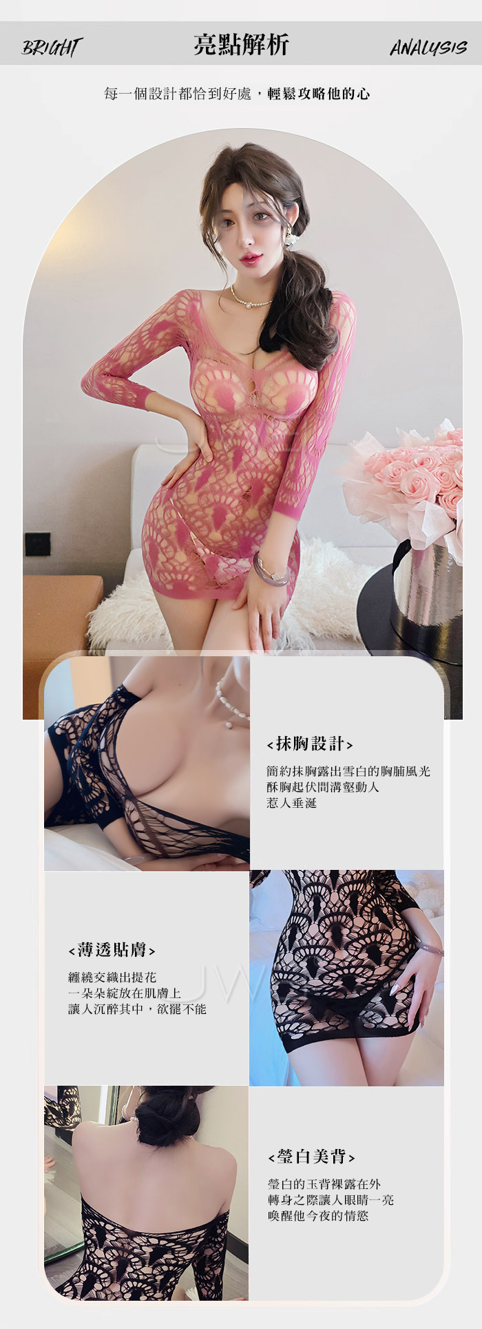| 嵐花嫣然.知性提花大網眼透膚性感包臀網衣【黑色】