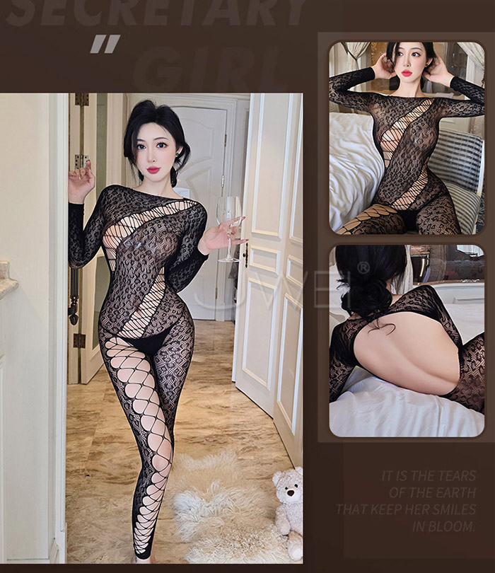 | 《JIUAI》極性貓裝!性感露肩緹花蔓延挖空美臀開襠連身網衣