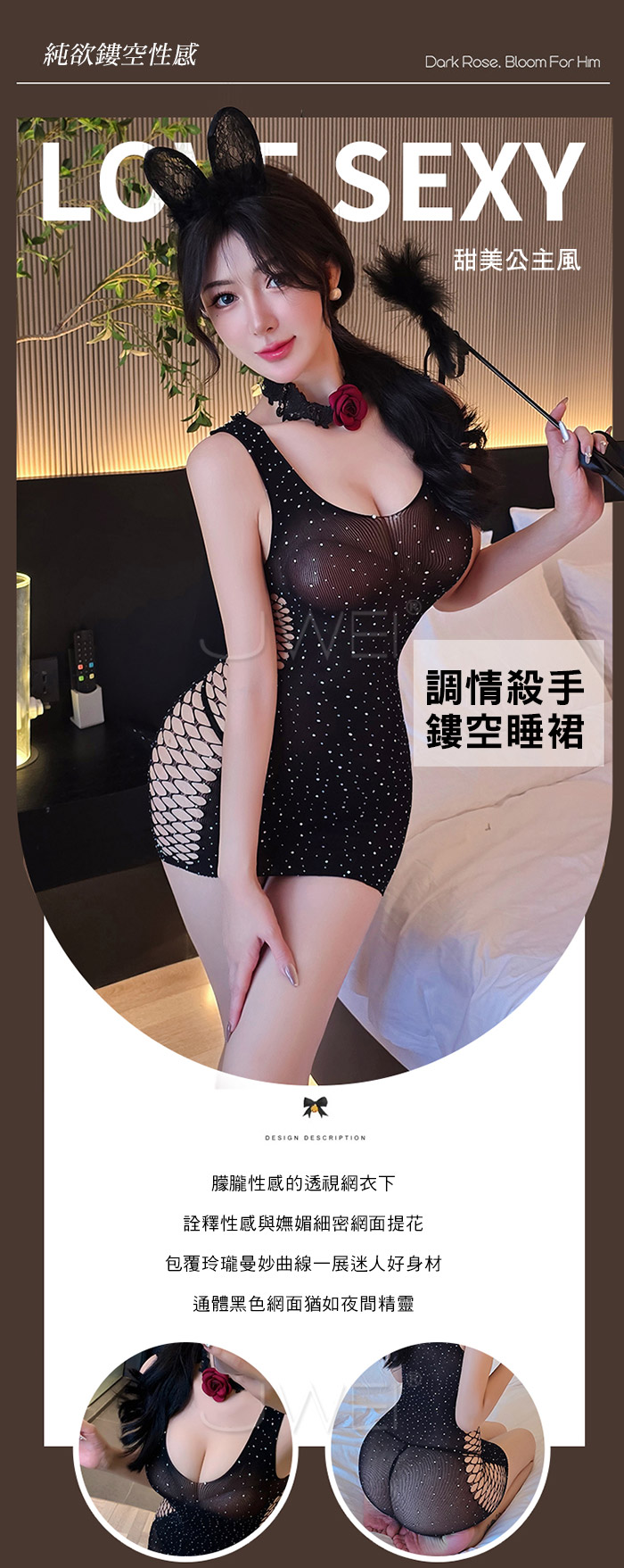 | 耀眼甜心.甜美公主風朦朧鏤空透視包臀網衣