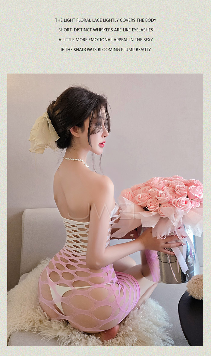 ►您現在的位置:首頁>暗夜天使.漸變色一字領大網情趣連體性感貓裝【白漸粉】