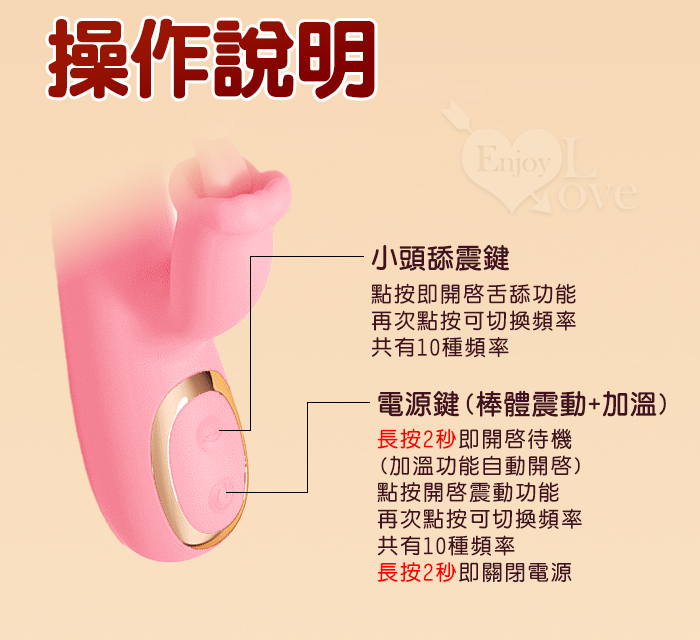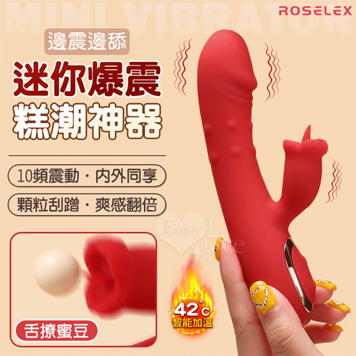| ROSELEX 迷你糕潮神器 雙10頻雙激震舌擊點 CG內外同享加溫按摩器 - 紅