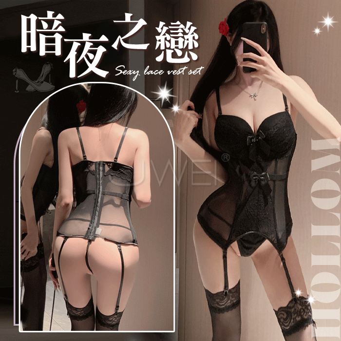 秘密情人‧絕色蕾絲吊襪帶 + 洞洞網襪組